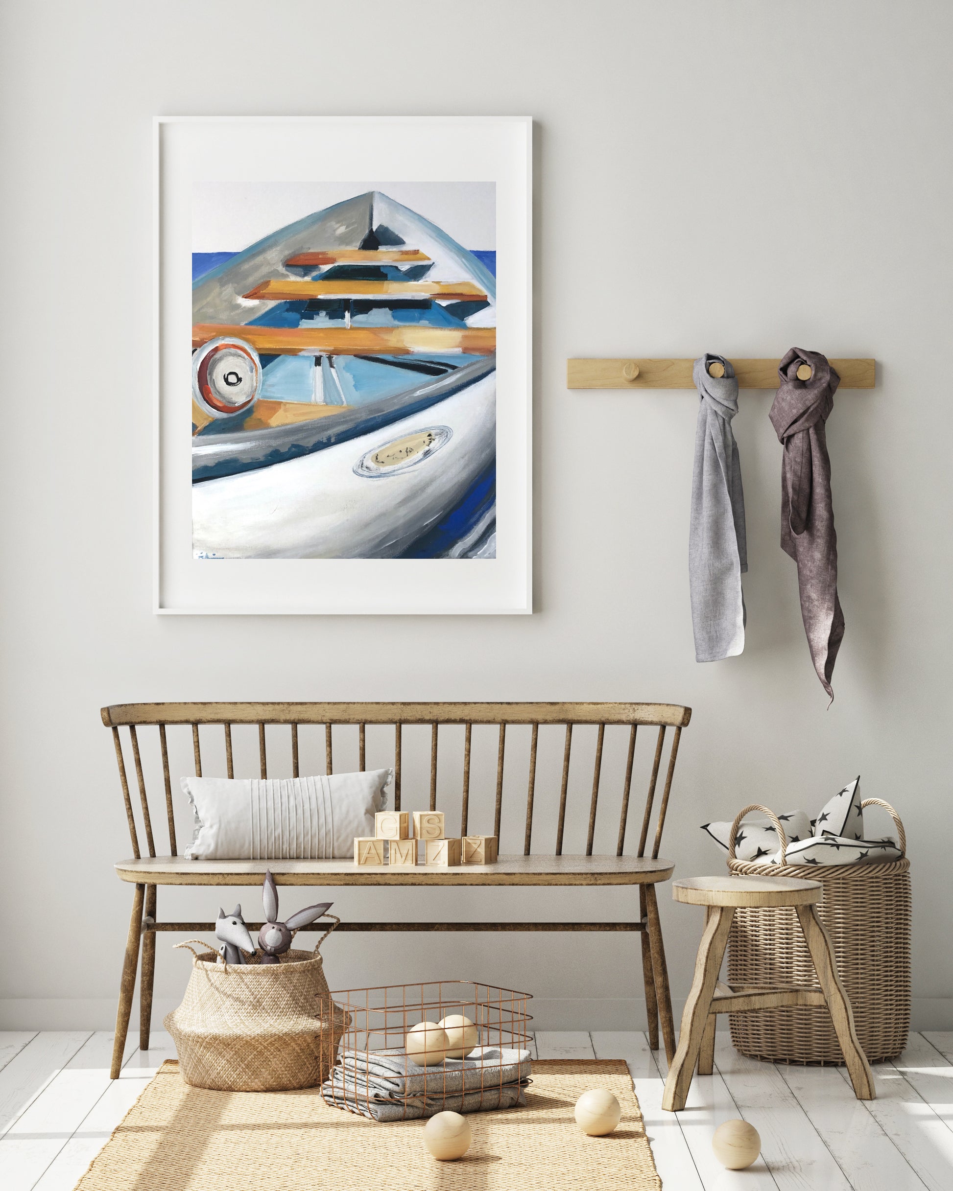 A nautical painting of the life by the sea. Always ready to head out.