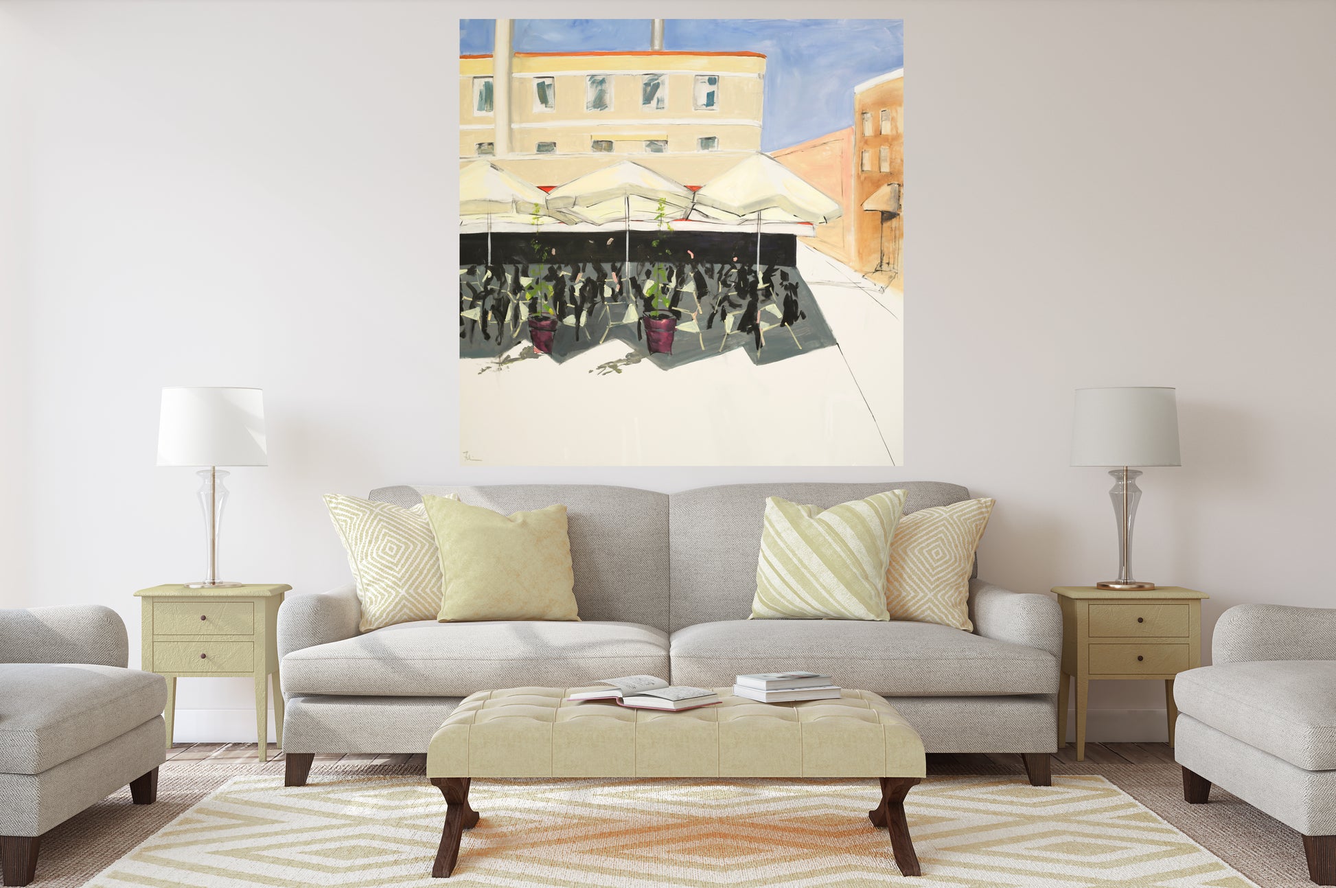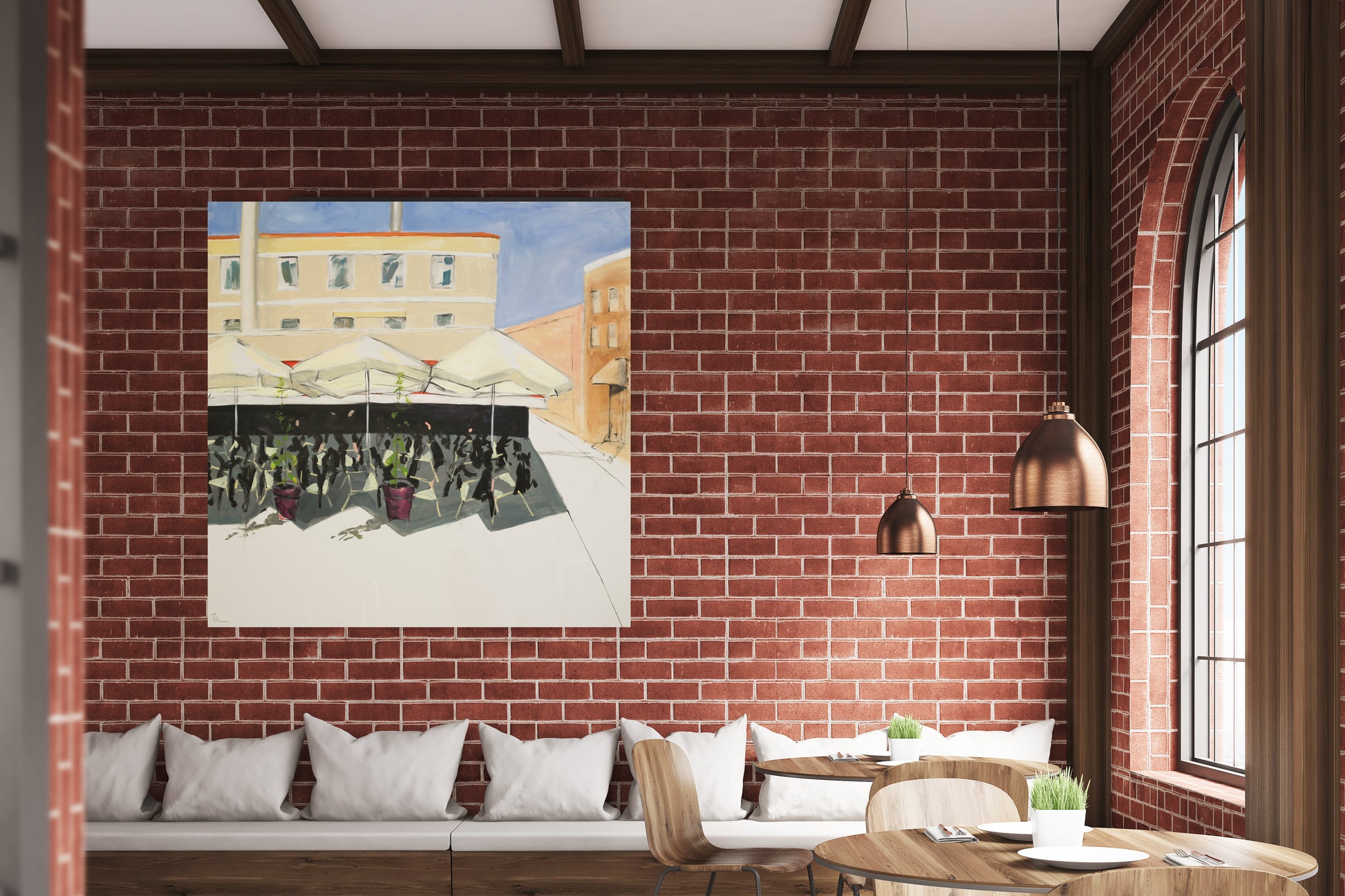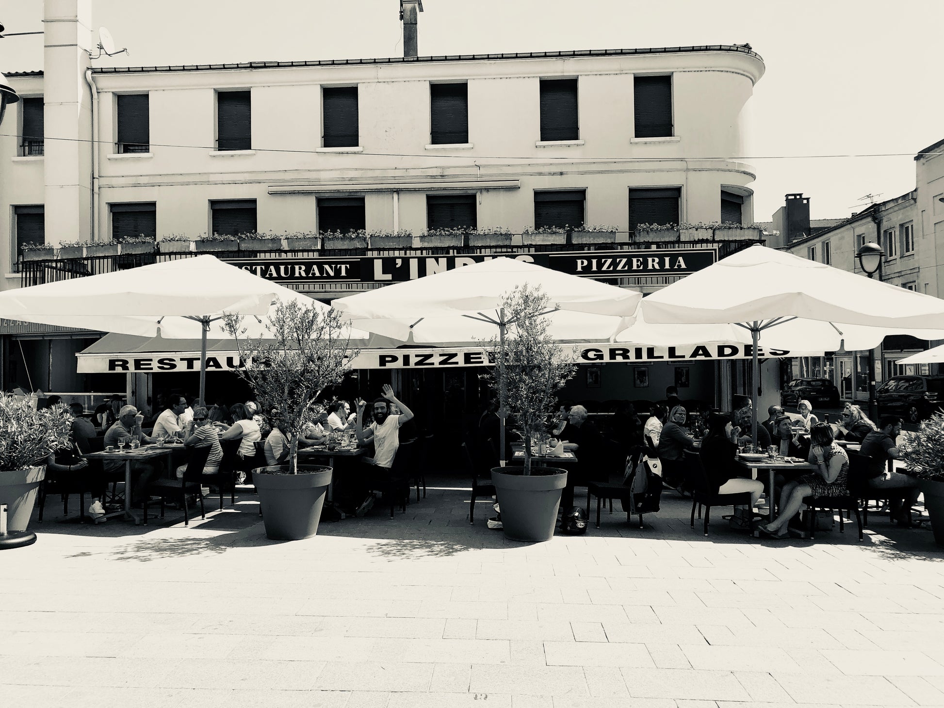 Priorities are correct in France. People gather at noon and stay till 2pm "bon apetite" to visit, catch their breath and enjoy the moment. No rush. Here is a sunny day at the cafe where the city is alive under the umbrellas of a "lunch" and the streets are empty of workers and hustle.